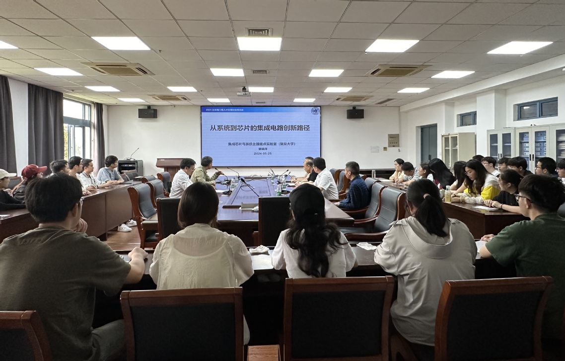 曾教授作了题为《从系统到芯片的集成电路创新路径》的学术报告。他从关于信息领域的关键核心技术创新问题、应用驱动应该是未来技术创新的必由之路、集成电路创新链中的科技问题在哪里、探索不单纯依赖尺寸微缩的芯片研发新路径四个方面形象生动、深入浅出地讲述了如何开展科研工作,同时介绍了团队的科研项目——领域专用的感算存一体智能传感芯片。与会师生踊跃提问,现场交流氛围浓厚。