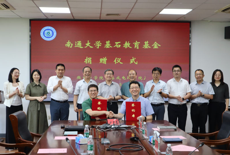 徐骏代表学校对石磊支持学校事业发展表示感谢。他表示,基石教育基金的设立是学校与通富微电积极推进合作的生动体现,有助于双方通过项目化产教融合、产创合作不断培养高层次、高技能人才。学校将邀请通富微电专家走进通大,积极融入学校教育和科研体系,在双方良好的合作基础上,打开更多交流空间,集聚更加广泛的发展资源。学校也将严格按照基金管理办法,认真严谨地做好基石教育基金的使用管理和监督工作,以最大化的效益来提升学校人才培养质量与学科发展水平,为社会输送更多优秀学子。