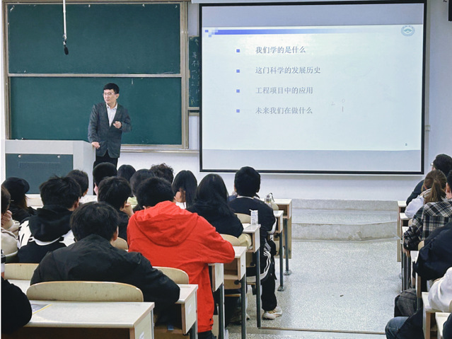 课堂上,张超围绕半导体展开了生动而形象的讲解。他从“我们学的是什么、这门科学的发展历史、工程项目中的应用、未来我们在做什么”四个方面引入,结合企业真实场景的案例,讲述了半导体的概念、半导体发展历程、半导体制造流程以及半导体晶圆制造流程。与传统的教学内容相比,这些来自企业真实场景的案例让抽象的理论知识变得具体可感,激发了同学们对专业知识的学习兴趣。整个课堂气氛活跃,互动频繁,张超老师专业的见解和风趣的表答赢得了阵阵掌声。