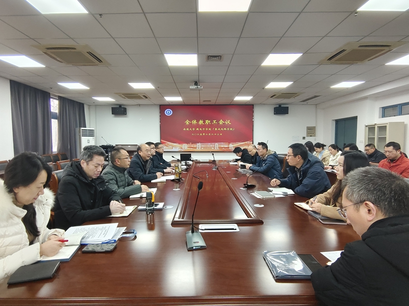 学院党总支书记卢兵主持会议,他分别从学科建设、学院发展、人才队伍、专业建设、学科竞赛和党建工作五个方面回顾了2024年学院工作情况,充分肯定了2024年学院工作取得的成绩,并围绕认真贯彻落实校“两代会”精神,就做好新学期学院重点工作,提出三点要求:一是坚守师德师风,树立良好榜样;二是深耕教学科研,培育专业人才;三是注重团队协作,推动学院发展。他强调2025年是“十四五”规划的收官之年,面对行业创新变革的深入发展,学院要坚持以立德树人为根本任务,秉持“干字当头,奋发有为”的工作精神,锐意改革创新,推进学院更好地发展,全力保障“名城名校”融合发展战略稳步前行,为学校高质量发展作出自己的贡献。
